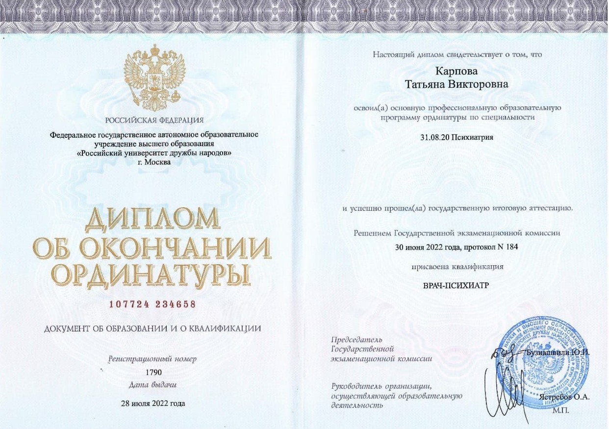 Демьянова Татьяна Викторовна – высококвалифицированный психиатр-нарколог с 8-летним опытом работы. Ее профессиональная деятельность связана с диагностикой, лечением и реабилитацией пациентов с зависимостями. С 2022 года трудится в наркологической клинике «Наркология Евро-Клиник», где применяет современные методы лечения, включая когнитивно-поведенческую терапию и мотивационное консультирование. Благодаря научным достижениям, активной практике и внимательному отношению к пациентам, Татьяна Викторовна пользуется высоким доверием и уважением в профессиональном сообществе.