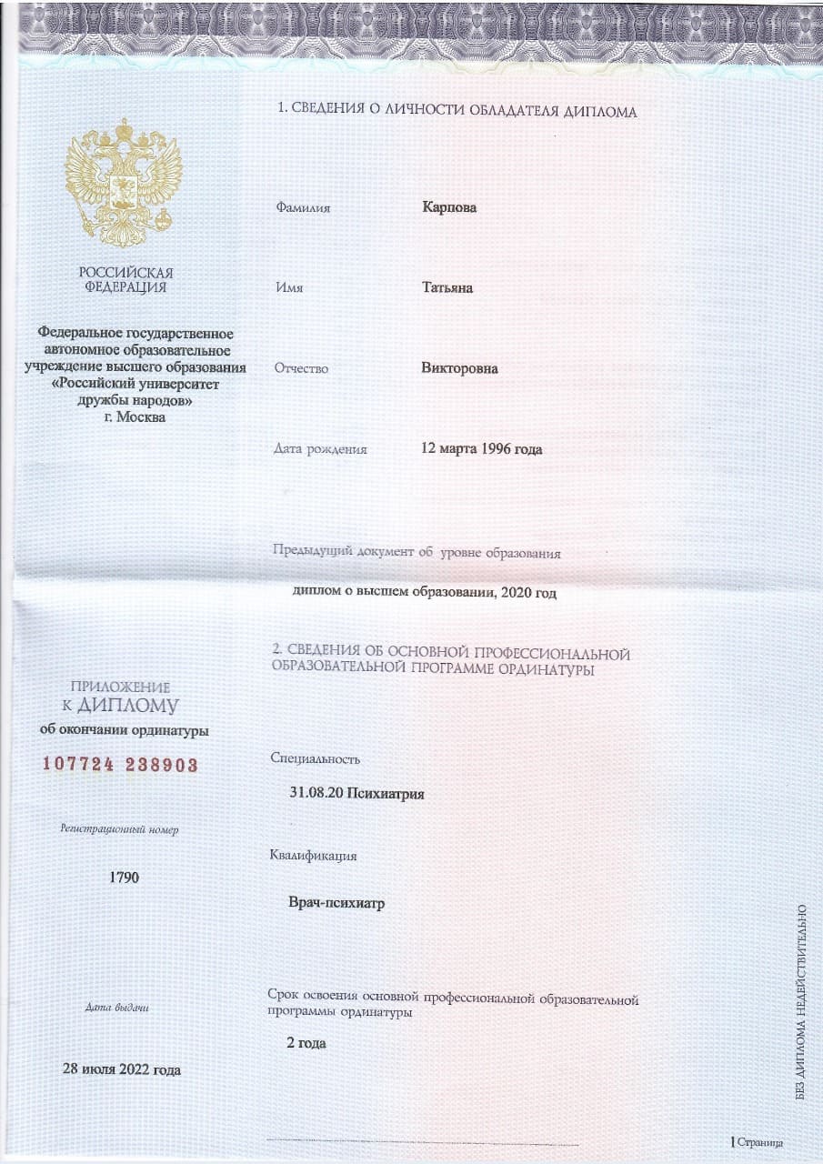 Татьяна Викторовна Демьянова — настоящий профессионал! Благодарю ее за поддержку и компетентное лечение. Она не только помогла мне вылечить зависимость, но и показала, как важно заботиться о своем психоэмоциональном состоянии. С ее помощью я научился контролировать свои чувства и вернуться к нормальной жизни. Татьяна Викторовна всегда внимательна, терпелива и спокойна во все моменты лечения. Очень признателен за ее помощь и рекомендую ее всем!
