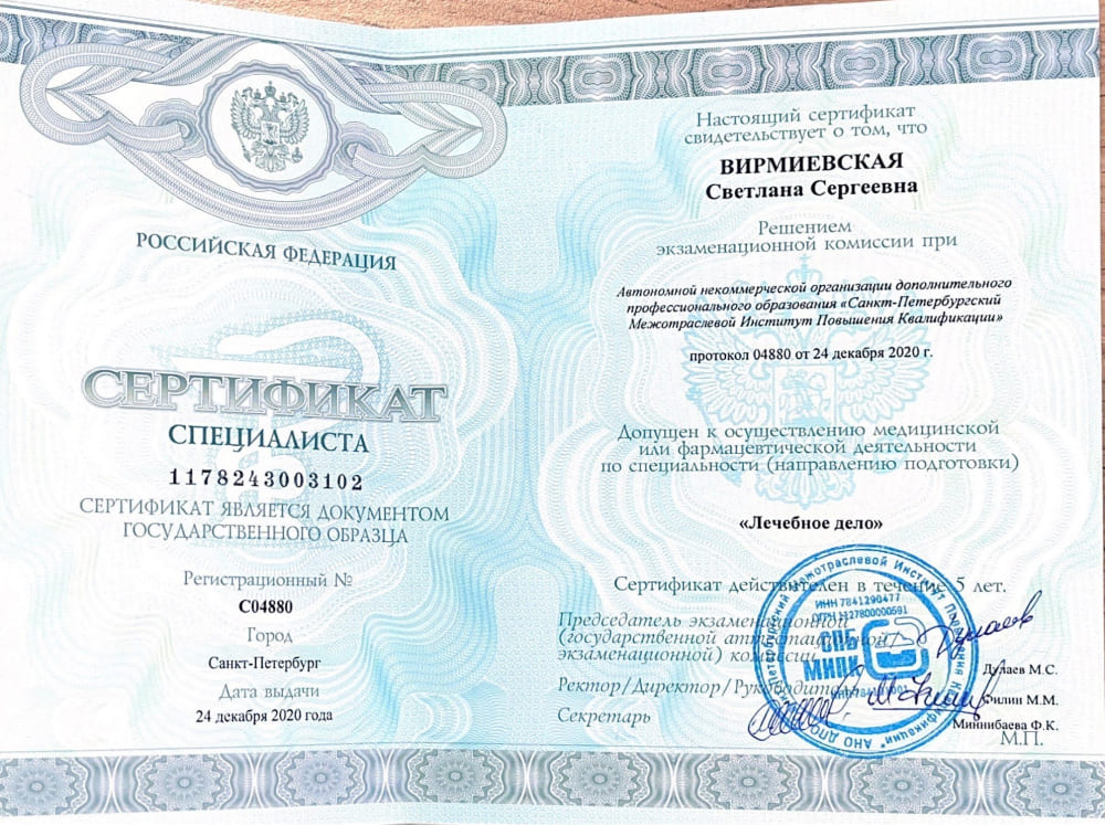 Хочу поблагодарить Светлану Сергеевну Вирмиевскую за ее поддержку и внимательное отношение. Она помогла мне пройти сложную процедуру лечения с максимальным комфортом. Благодаря такому профессиональному подходу я чувствовал поддержку и уверенность, что у меня все получится. Светлана Сергеевна — настоящий эксперт, который по-настоящему заботится о своих пациентах. Очень благодарен за помощь и с уверенностью рекомендую ее как специалиста!